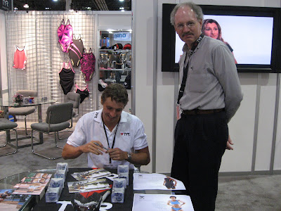 TYR's booth at Interbike was impressive. We had a great location right near the front of the show. You can get lost at the show, since it's so big. Luckily, TYR had a banner hanging from the ceiling to easily locate the booth.